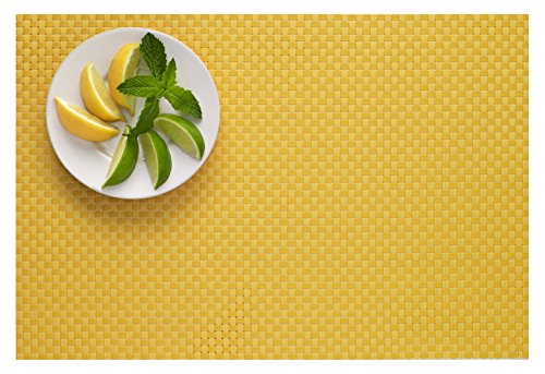 - Set of 4 woven textilene reversible placemats; lemon yellow color