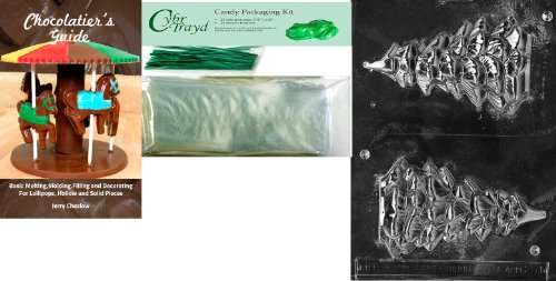 Cybrtrayd Hollow Tree, Solid 1/2 Chocolate Mold with Chocolatier's Bundle of 25 Cello Bags, 25 Green Twist Ties and Chocolatier's Guide