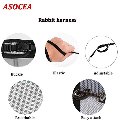 ASOCEA Soft Harness with Lead for Rabbits/Bunny (Gray)