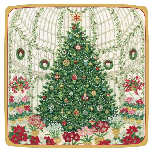 Entertaining with Caspari Entertaining Square Salad and Dessert Plates, Christmas at the Garden Square, Pack of 8