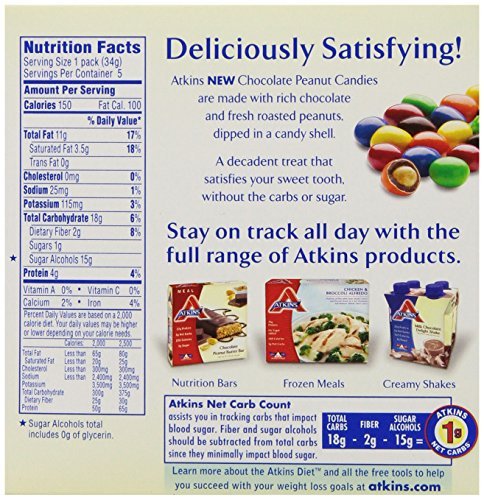 -. Title : Atkins Chocolate Peanut Candies, 1.2oz Bags, 5 Count (Pack of 12)