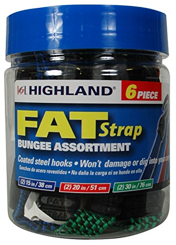 Highland Fat Strap Bungee Cord Assortments are three times stronger than traditional bungee cords. This 6 piece assortment include (2) 15”, (2) 20” and (2) 30” straps that are color coded by length for convenient selection. Made from multi-strand top quality rubber cords, these cords feature an extra-wide woven design that won't damage or dig into cargo. The steel hooks are coated with smooth plastic so they won’t scratch and mar and are stronger than conventional hooks. Cequent Consumer Products is the leader for cargo securing products with its Highland brand of products. Highland is dedicated to helping you safely load, anchor, secure, carry, trailer and organize cargo. From aluminum ramps to fat strap bungees and cargo securing products, Highland products are manufactured to quality standards designed to meet, and exceed, every expectation. Highland’s special line of products for campers called "Rugged Camping Design” includes tie downs, bungees, straps, clips and other products that are designed for the camping enthusiast. For heavy industrial use, check out Highland's "Industrial Grade" line of ratchets, cambuckles and other cargo securing items for heavier loads. NEW from Reese Power Sports brand, is a line of securing products designed especially for boaters called “Reese Power Sports Marine” that includes Transom, Gunwale and Bow tie downs.