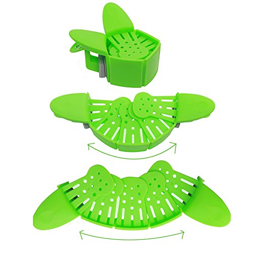 Clip-on Silicone Collapsible Colander,Food Strainer for Cooking Draining,BPA Free FDA Approved,Dishwasher Safe,with Straining Pasta, Vegetables, Grease Washer Spaghetti Container Universal (green)