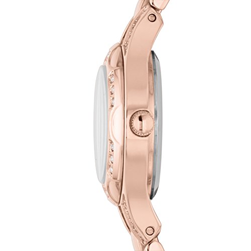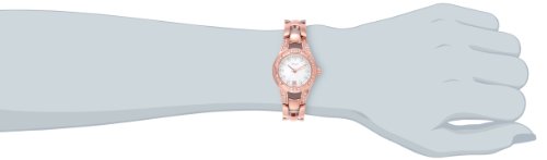 Rose Gold-tone stainless steel watch band with sparkling crystal rounds at lugs and bezel