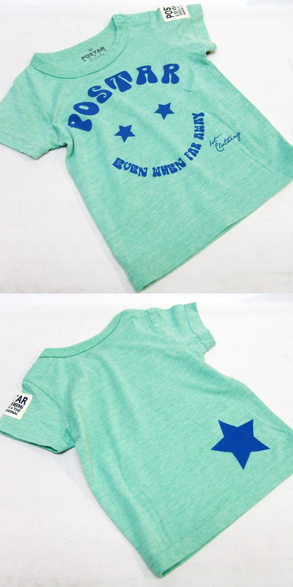 コメント:スマイルマークのようなロゴが可愛い!!プチプライスが魅力的☆肌触りのよい素材です!◎※80,90,95cmは左肩スナップボタン付きです。