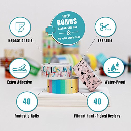 - Designs: Lovely, vibrant and bright colors. Your friends will be amazed by the creative gifts and decorations you will make with this tape. In this premium set, you will find our newest designs. It's a box full of color and fun!