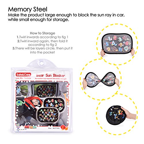 【SAFETY ASSURED AND PERFECT GIFT SET FOR CAR RIDES WITH KIDS & PETS】Safe& Care take care of safety, when we design this car window shade, we guard your car/vehicle side window without blocking the driver's view. It is not too dark to block the view that you can still easily see the scenery outside the window.Our high visibility sun protector provides SPF 40+ Protection.Also comes with a premium quality black storage pouch, just fold the sunshade into small circle,very easy to carry or store.