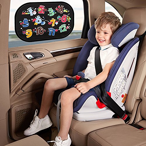 【EXCELLENT HEAT-RELIEVING BLOCK OVER 98% HARMFUL UV RAYS】No one wants his or her child exposed to sun's heat to get skin burnt that may result in painful burns and even cancer. In our package includes two 19''X13''side car window sun shades, the premium mesh fabric design would offer amazing sun,glare and UV rays protection for your kids.The car sun shades will definitely help keep your car cooler on hot days.