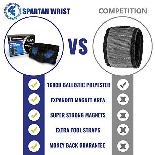Spartan Wrist Magnetic Wristband | Magnet Tool Holder for Screws, Nails, Drill Bits | Unique Tool Gift for DIY Handyman, Father/Dad, Husband, Boyfriend, Men, Women
