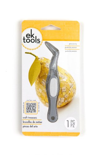 A handy to have on hand to pick up tiny pieces, beads, embellishments and more. The Ek Tools craft tweezers feature an ergonomic, reverse grip design and non-stick coating which means they can even pick up stickers. Protective cover slides over the angled precision tip. Approximately 4.75-inch long.Feature