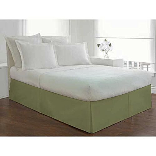 Crescent Bedding Pleated Bed Skirt Easy Care, Quadruple Pleated Design, Fabric Base Allows for Natural Draping, 15" Fall Covers Legs and Bed Frame (Queen, Sage)