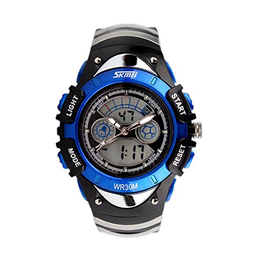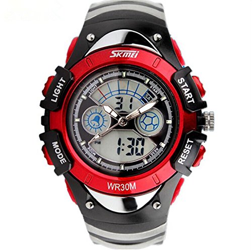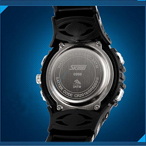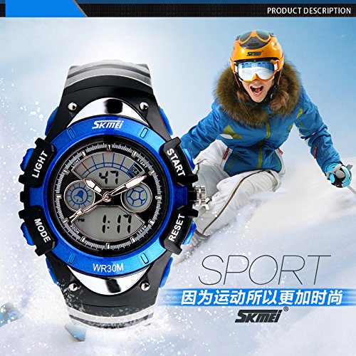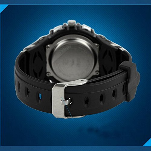 Main features: 100% New high quality Shows time digital numbers Digital And Analog Dual Display Sports Watch Display time in numbers indicate the hour, minutes and seconds Display the day & date 12h/24h Alarm clock function included Stop watch function included Four buttons to control different functions Luminous Weight :55 g Band material: Rubber Gender :Men Dial diameter: 3.3 cm Strap length: 22 cm The waterproof depth is up to 50M (Please Don't Press Any Key Underwater)Feature