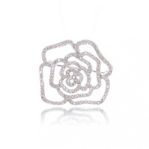 -. Feature : Rose brooch pin / Rhodium plated base metal / Pave CZ stones / Measure: 2 1 4in H x 2 1 4in W