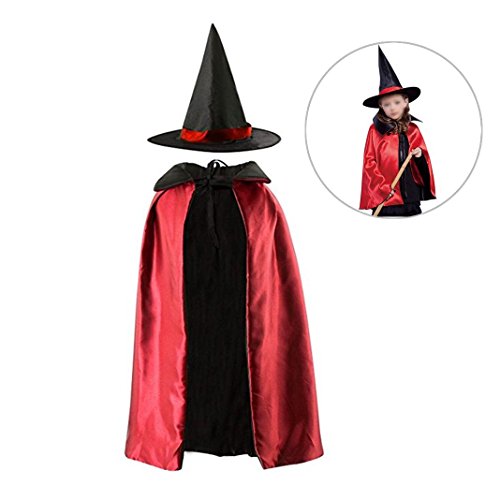-. Feature : If you're looking for a halloween/masquerade mysterious costume,this set satin cape with hat is totally work great! / Costume cloak and witch hat made of premium silk material, touch smoothly and comfortable wearing experience / 2 sizes avaliable: Length 70cm/27.5 inch for Kids(from shoulder to hem, not included hat),Length 90cm/35.4 inch for adult (from shoulder to hem, not included hat) / Our cloak is pretty as well as functional,apply reversible design, one side is black and another side is purple or red,both side can be wear according your different demands. Pay 1 pcs P.R.Ice get a reversible cloak and a cone hat,totally worth to try! / Fancy dress perfect for a variety of costume ideas including vampire, witch, wizard,magician, gothic, medieval ect. Easy to complete your make up of Halloween, Easter, Christmas party costume. It is one of the best gifts for unisex kids to enjoy theirs festival