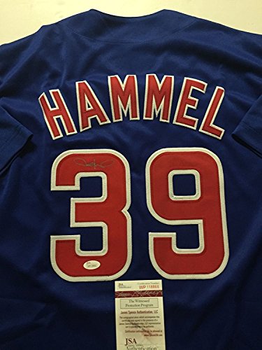Autographed/Signed Jason Hammel Chicago Cubs Blue Baseball Jersey JSA COA