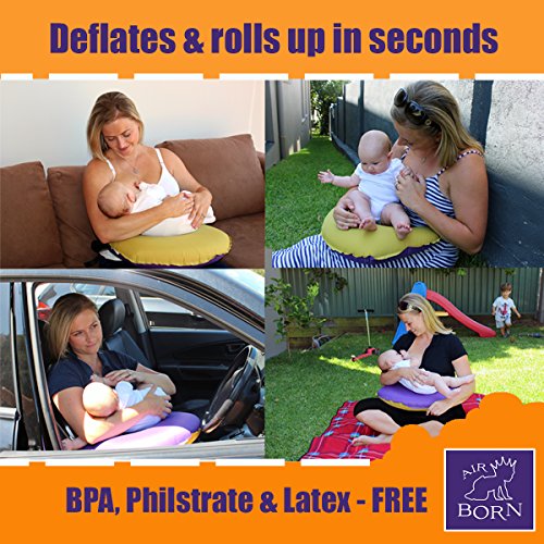 - Feature : ✔✔ NO MORE SCREAMING BABIES -Feed on the go - imagine the freedom of feeding your baby anywhere. Simply turn the valve and watch the pillow inflate in 30 seconds. / ✔✔ BEST COMFORT FOR MOM & BUB - Designed with a lactation specialist Airbornbaby maintains the position to allows easy latch on which helps reduce reflux and enhances digestion and comfort for mum and bub. / ✔✔ NOT BULKY - Rolls up and fits into your diaper or hand bag or simply hang it from your stroller. Inflates and deflates in seconds. / ✔✔ EASY TO CLEAN - Don't worry if you have a reflux baby just wipe the pillow with a baby wipe. Airbornbaby is also machine washable. / ✔✔ NO DANGER TO YOUR BABY - Only the safest for your baby, BPA, Phthalates, Latex and Lead FREE