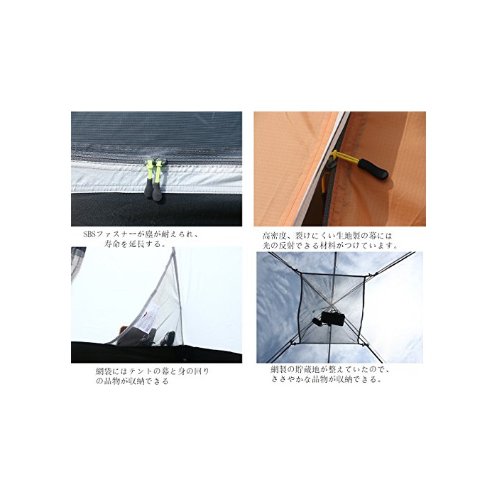 상세--SBSfastener는 먼지를 견딜 수 있고, 나일론 로프가 소음제거 처리하여 세로,텐트 바닥의 각각이 강하게 해 제조했다, 망제의 저장지가 조절해 있던 때문에,작음은 물건을 수납 할 수 있는.망봉투에는 텐트의 막과 신변의 물건을 수납 할 수 있는외장이 환기용의 창과 re《후레쿠숀》장치가 있다.