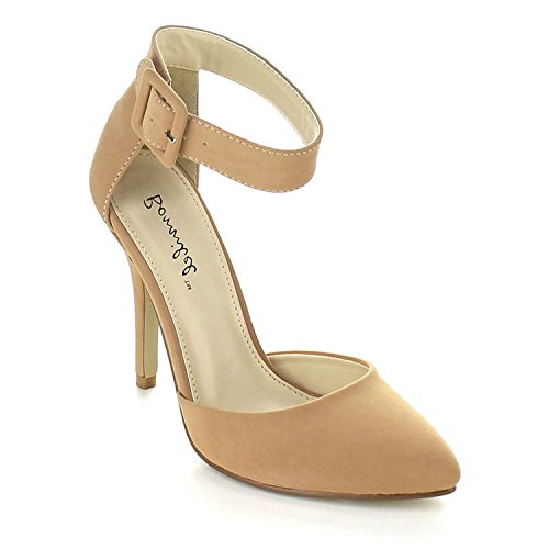 Binding : Apparel Product Description Walk in Style and stay confident in these d'Orsay design shoes from Bonnibel! Adjustable ankle closure creates a custom fit, while a vibrant hue and d'Orsay design enlivens looks with feminine flair. Heel Height: 4" (approx.) 0