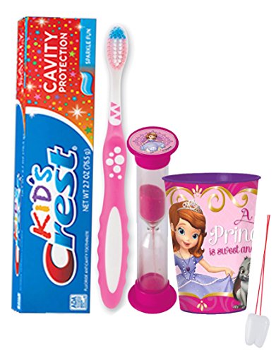 -. Binding : Misc. -. Brand : Disney -. EAN : 0761656261503 -. Feature : Turn something your kids have to do into something they want to do...Because when brushing is fun, it gets done! / (1) SmileCare Youth Ultra Grip Toothbrush (Comes in Pink Or Purple) (1) Kids Crest Cavity Protection Sparkle Fun Toothpaste, 2.7 oz / (1) Sofia The First 16 Oz Mouthwash Rinse Cup! Doubles As Toothbrush Holder! / (1) Dentist Recommended 2 Minute Sofia The First Brushing Timer (Assorted Styles) / Plus Bonus "Remember to Brush" Visual Aid Tooth Saver Necklace. Hang it in their bathroom or by their bed so they remember to keep their chompers sparkly fresh. You could also use these tooth charms to save one of your child's baby teeth. -. IsAdultProduct : 0 -. Label : Smile Care -. Manufacturer : Smile Care -. MPN : BRSH195 -. PartNumber : BRSH195 -. ProductGroup : Beauty -. ProductTypeName : BEAUTY -. Publisher : Smile Care -. Studio : Smile Care -. Title : Disney P.R.Incess Sofia The First Inspired 4pc Bright Smile Oral Hygiene Set! Toothbrush, Toothpaste, Brushing Timer & Mouthwash Rinse Cup! Plus Bonus "Remember to Brush" Visual Aid! -. UPC : 761656261503