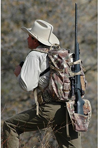 -. Feature : Built in Bow/r.i.f.l.e Pouch offers hands free convenience when on the move, allowing quick access to your weapon when needed. Pouch will fold up and tuck away when not in use and the finger lock buckle system will keep your weapon secure. / Heavy duty padded waist belt and shoulder straps provide maximum comfort while the sternum strap distributes the weight evenly / Bow/r.i.f.l.e Pouch works great at protecting your weapon when raising or lowering your bow to and from a treestand / Unique tip pocket was designed to hold yur spotting scope and tripod close to your body so the weight is distributed evenly. Eight pockets in all, from large main compartment to hidden security pocket, the MasterGuide can hold it all / Lashing straps are a great place for storing shooting sticks, safari sneakers and other bulky items and the additional strap on the waist belt is great for binocular cases, ammo pouch, etc.
