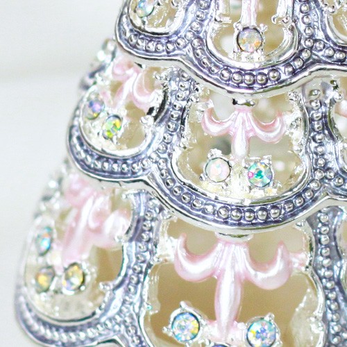 | ジュエリーボックスと言えば、指輪やピアス、ネックレスなどのアクセサリーを入れる引き出し型のケースを思い浮かべる方が多いかもしれません。 ピィアースのジュエリーボックスは、動物や花などをモチーフに作られ、合金製でずっしりとした重さがあります。また高品質のクリスタルガラスを贅沢に使用。まるでジュエリーボックスそのものが宝石のような、高級感溢れる仕上がりです。 小物入れとしても使えるように開閉口には磁石が取り付けてあり、アクセサリーなどなくしやすいアイテムの収納ができます。キラキラと美しく輝く宝石箱は、そのまま飾って楽しめるインテリア雑貨として多くの方に愛されています。 国内トップクラスのジュエリーボックスメーカーであるピィアースは、2004年ごろから本格的に宝石箱の製造を始め、現在のジュエリーボックスはなんと300種類以上。大規模展示会でもご好評いただいており、全国有名百貨店でも販売されています。 自社工場でひとつひとつ丁寧に手作りし、原型作成、研磨、加工、着色、小さなクリスタルガラスの取り付けなども全て手作業で行われるこだわりのハンドメイド品。完成後は厳しい検品の後、丁寧に梱包作業をしお客様にお届けしております。 ピィアース商品は、全国有名百貨店および全国有名宝石店チェーンにてお取り扱いいただいている高品質商品です。 ★自分へのご褒美に…コレクションして並べて飾ると、さらにかわいらしさUP! ★恋人へのプレゼント…中にアクセサリーを入れて、サプライズな贈り物として ★家族への感謝ギフト…お母さんや姉妹へ、日頃のありがとうの気持ちを込めて ★誕生日プレゼント…お友達の喜ぶ顔が見たいから、いつもと違うキラキラギフトを ★小さな女の子へ…まるでお姫様が使っているようなキラキラ宝石箱は女の子の憧れ! |