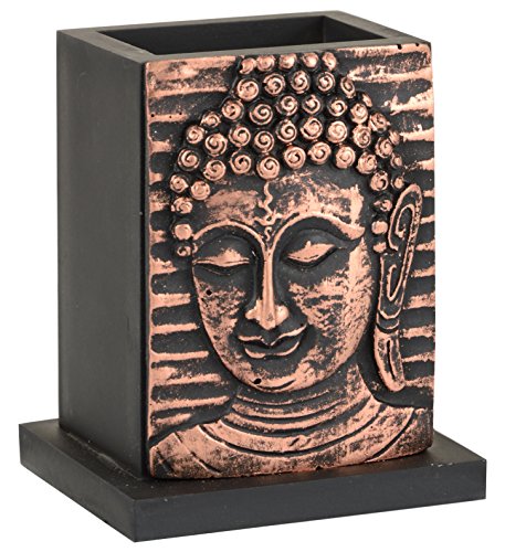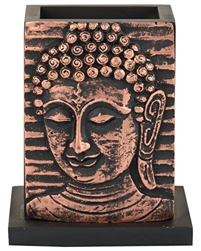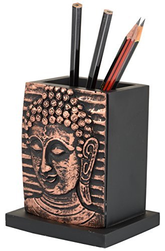 Buddha Pen Pencil Holder stand Wood Design for Desk, Office, and Home decor (Bronze)