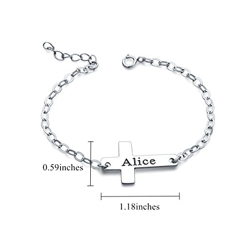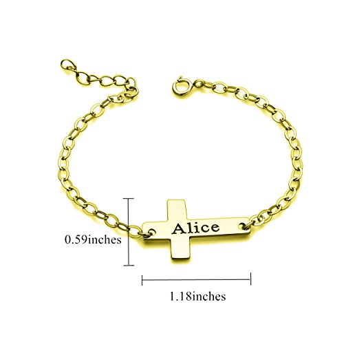 -. Title : Personalized Name Sideways Cross Bracelet Gold Sterling Silver Custom Initial Ankle Bracelet Women Gifts