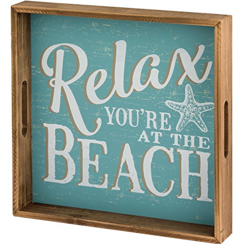 Prinz 11.75 X 11.75 Inch 'Relax You're at The Beach' Natural Wood Tabletop Tray Plaque