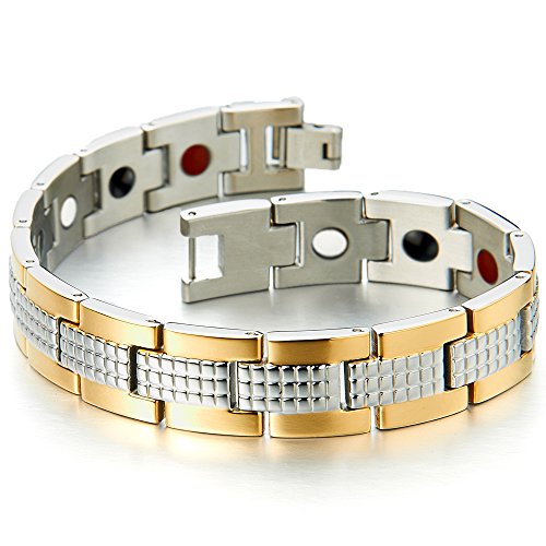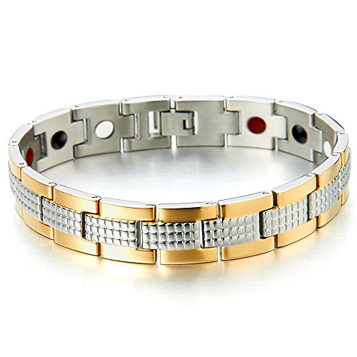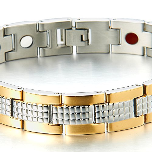 H+C 스테인레스 맨즈 팔찌 - 게르마늄 마그넷- 치료 - 골드 실버 바이 컬러 - 세련된 스타일