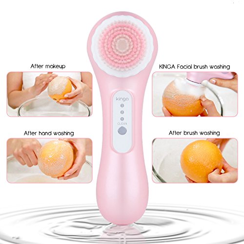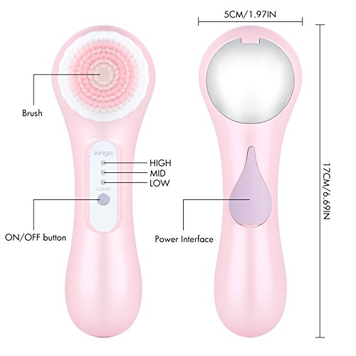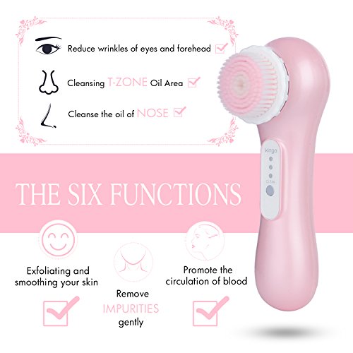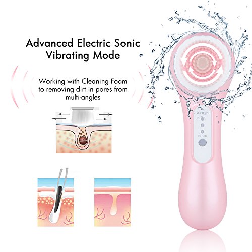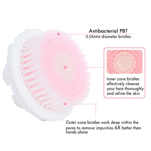 ✔CLEANER SKIN: The circular rotating motion of the electric cleansing brush is six times more effective than cleansing with your hands alone. Scrub out dirt, dead skin and bacteria from your pores and help reduce blackheads and whiteheads. Hard to clean areas, like the T-zone and sides of the nose, are a cinch to clean with the cleansing brush. Use with your favorite facial cleanser twice a day to effectively exfoliate and maximize the power of your skin's natural renewal.