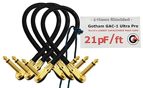 3 Units - Gotham GAC-1 Ultra Pro - 12 Inch - Low-Capacitance (21pF/ft) Guitar Bass Effects Instrument, Patch Cable with Gold Plated ¼ Inch (6.35mm) Low-Profile, Right Angled Pancake type Connectors