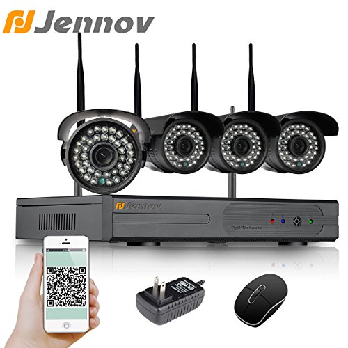 -. Feature : ALL IN ONE WIFI SYSTEM : Built-in Wifi Mainboard,No need arrange cable, No need switchboard,Play and Plug,Suitable for home use. / CLEAR IMAGE: HD 720P Wifi system is of clear image in day and night. It is a very good home use wifi system to protect your baby,your pet,your property. / REMOTE VIEW WITH FREE APP : Remote View Anywhere Anytime used free App. Just download a App or Scan the QR code in the manual ,you can remote view the video in anywhere.It can be fixed outdoor and indoor. / EASILY USE : There are 4pcs Power Supply in the packages for the 4 Wifi Ip Cameras. And wait for about 1-2 minutes when power on. The image will be showed smoothly. / WARRANTY AND WARM TIPS : We supply 1 year warranty in parts. We can supply the parts to replace within 1 year. And we can supply the customer service forever .This is a Wireless Wifi NVR system, you need to use enternet cable to connect the NVR with your router .When the NVR run, the wifi signal of the cameras and NVR can be matched automatically.