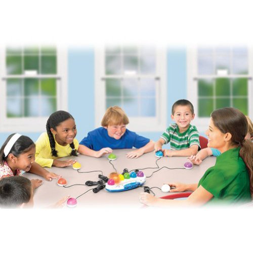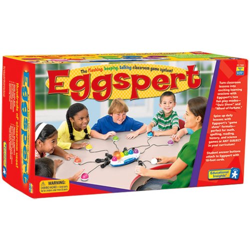 Spice up classroom management and practice math facts, spelling, history, science terms anything in your curriculum with this clever, motivating answer system. Powered by an AC adapter or batteries (not included). Eggspert features two modes of operation:Jeopardy Mode:Each of the half-dozen Eggspert lights connects to an Answer Button held by a student. After hearing a question, students who want to answer squeeze their Answer Buttons. The fastest 'squeeze' lights up the corresponding 'egg' light and the question goes to that student.