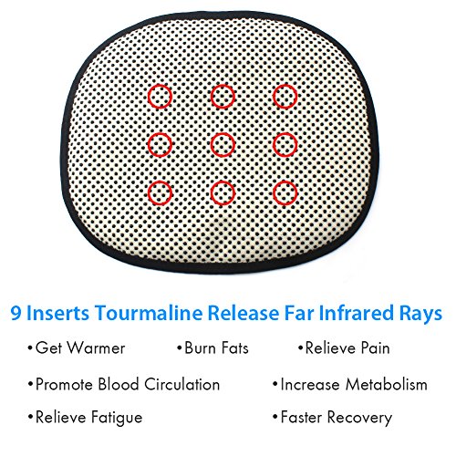 - TOMURMALINE WARMER PAD - With 9 inserted tourmaline, it can release far infrared ray which is very healthy to human being. It can make you get warmer in few minutes, burn your fats, relieve pain, promote blood circulation, etc. You can put it on anywhere you feel sore. Very helpful when women in their period