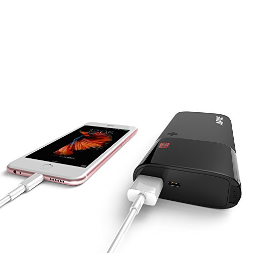 APIE Power Bank Portable Charging 10000mAh External Battery Charger Smart LCD Display & LED Flashlight Backup Charger 2.1Amp Input Fast - Black