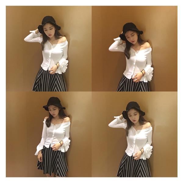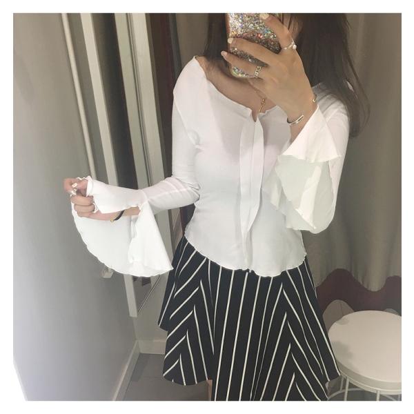 たっぷりと生地を使ったフレアスリーブがエレガンスな印象のトップス。