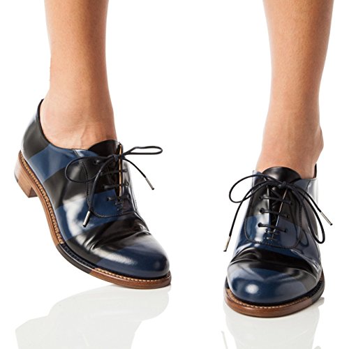 Binding : Apparel Product Description Brush off Italian leather oxford with hand-burnished stripes from The Office of Angela Scott. This leather is a two-tone leather that has been painted with a top coat and then hand-burnished to create stripes. This leather will patina with age as to reveal the true hand-crafted nature of the stripes. 0