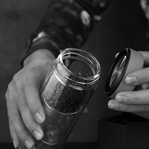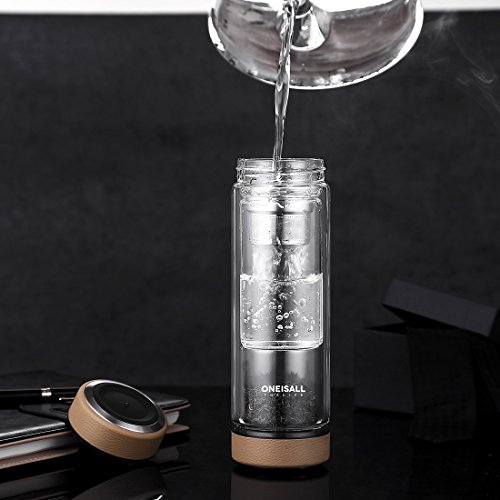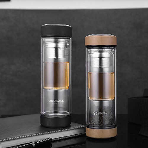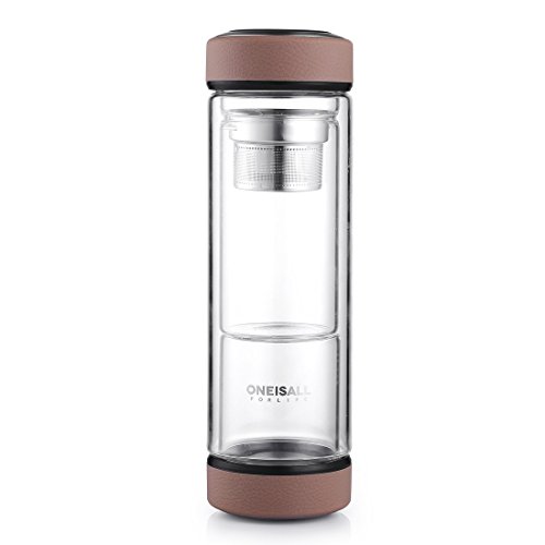 ONEISAll GYBL274 350ML Multifunctional Glass Drinking Water Bottle,Ultra Clear Spill-proof Strong Double-wall Borrosilicate Glass Tea Tumbler with Strainer, 542G