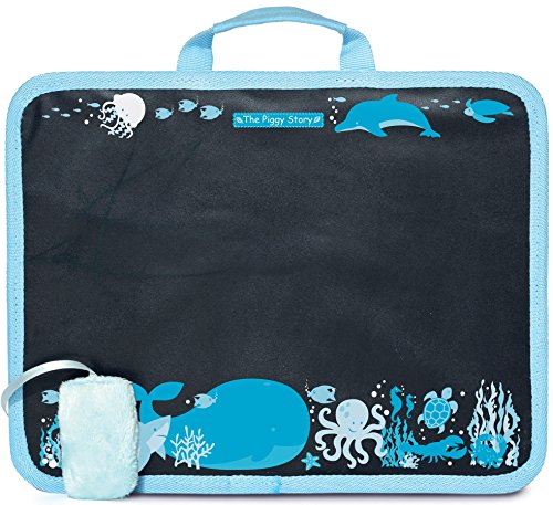 Chalk N Doodle is more than simply a chalk board & chalk. It's actually two items in one! Use it as a chalk board or as a convenient lap desk. A sturdy carry handle, two side flaps to keep chalk or crayon's handy and a lap cushion make it perfect for traveling and that artist on the go. Includes 6 pieces of colored chalk and a chalkboard eraser with a closeable flap to keep everything in its place. There is even a wonderful themed design on the chalk board to help inspire the young artist. The Piggy Story is a manufacturer of gift, travel and accessory products for children. Each original story pattern starts with a drop of imagination and then is artfully drawn into a colorful fabric that captures a story to spur imagination and creativity. Parents appreciate that every product is affordable, durable and practical. The Piggy Story - Designed To Capture Young Imaginations!Feature