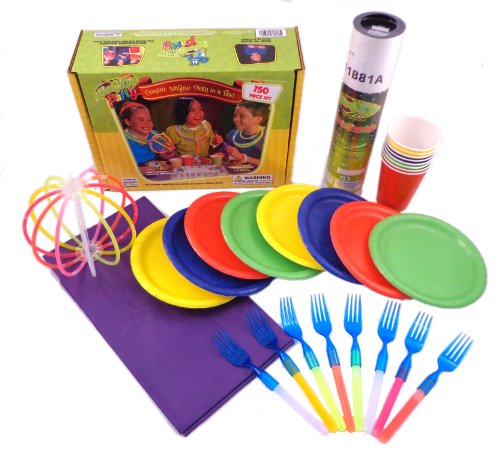 Studio : Virginia Toy Publisher : Virginia Toy Binding : Toy Product Description Includes these WeGlow items: 8 patented utensil heads, 8 glow handles Assorted Colors, glow centerpiece, 50 Assorted Color Glow Sections and Connectors;Includes 8 each of the following: 8.75 plates, 9 oz cups, and napkins;Comes with one 108 x 54 table cover;Use glow sections for games like: glow jump rope, glow hoops, glow limbo, and more;More glow utensil heads can be purchased separately: salad fork, dinner fork, teaspoon, tablespoon, knife 0