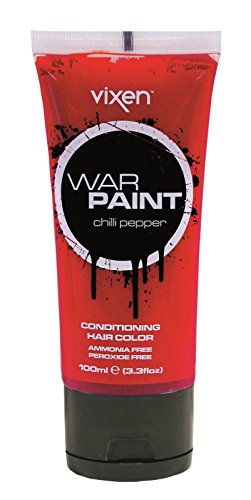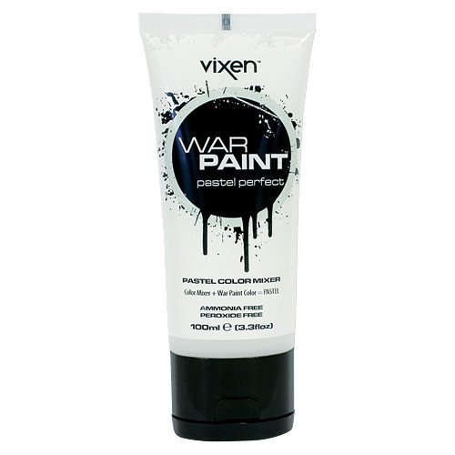 Dare to be different with Vixen War Paint. This semi-permanent conditioning color contains no ammonia or peroxide, allowing you to be creative and reinvent yourself in 30 minutes or less. Using active principles Vitamin B5 to strengthen hair and Hydrolytic Keratin for gloss and shine, you'll have bright, luscious locks before you know it! Achieve longer lasting color adding amazing gloss and brightness while re-hydrating your hair with just one product. Available in 12 Hot and Spicy Colors! Pastel Perfect (white) is a pastel color mixer to change Vixen War Paint colors into pastel shades.Feature
