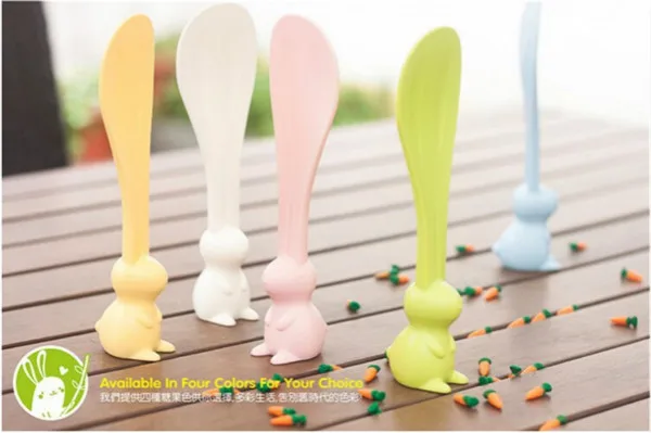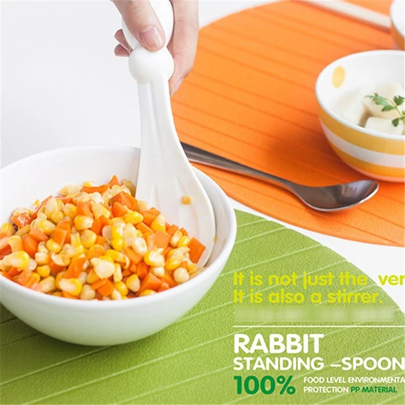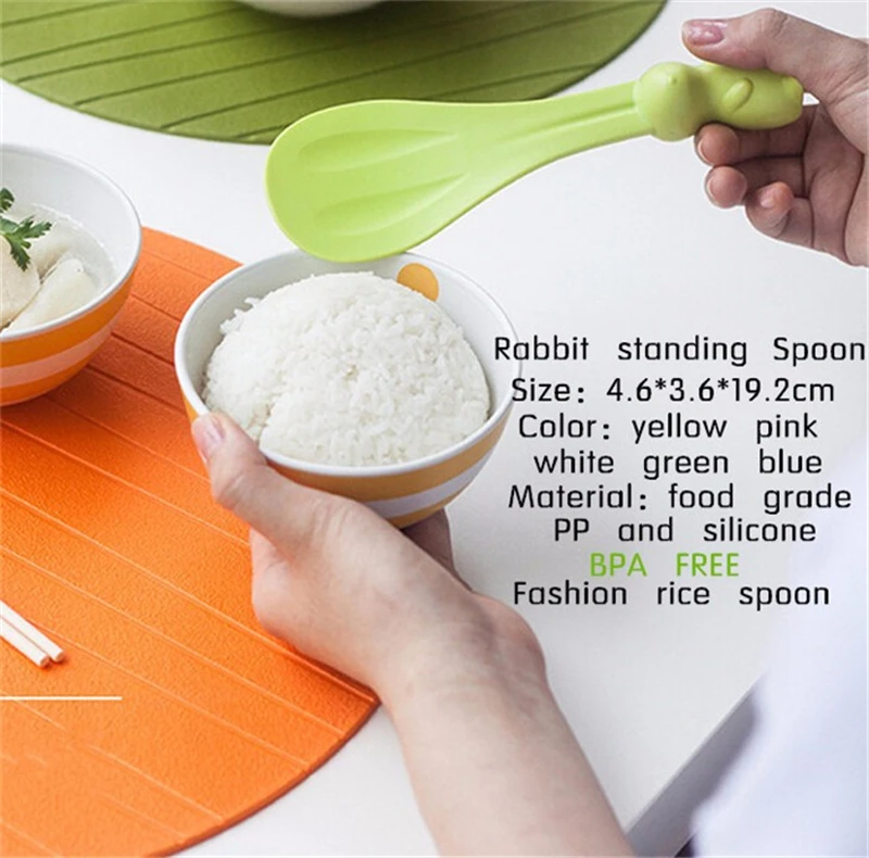 Cute Cartoon Rabbit Spoon Non Sticky Vertical Stand Rice Scoop Soup Sauce Ladle Plastic PP Kitchen Tool 1PCS