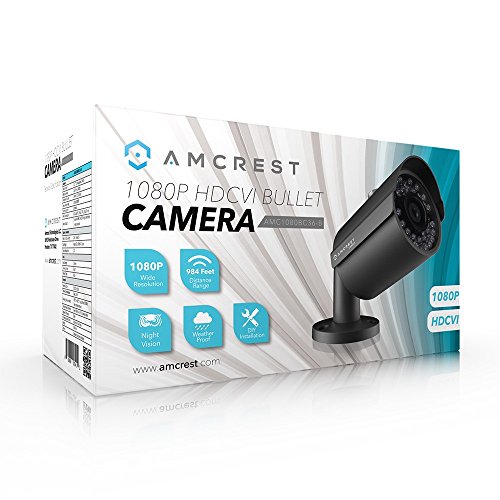 -. Binding : Electronics -. Brand : Amcrest -. Color : Black Bullet 1080p -. EAN : 0859888005412 -. Feature : The 1080P HDCVI Security Camera is a high resolution 1920 x 1080 (1920 TVL) camera which provides excellent video quality and clarity. / Connect your camera to the Amcrest HDCVI Security System to view and record in HD quality. / View your camera anywhere in the world from a mobile device or tablet when connected to the Amcrest 1080P HDCVI Security System using our Amcrest View app on the Apple Store and Google Play Store. / 20 Powerful IR-LEDs for Night Vision, IP66 Weatherproofing, and Long Distance Transmit Range up to 984ft. / Camera Power Supply and Coaxial Video Cables are not Included but are Required and Sold Separately -. Label : Amcrest -. Manufacturer : Amcrest -. Model : AMC1080BC36-B -. MPN : AMC1080BC36-B -. PackageQuantity : 1 -. PartNumber : AMC1080BC36-B -. ProductGroup : Photography -. ProductTypeName : SURVEILANCE_SYSTEMS -. Publisher : Amcrest -. Size : 1080P HD-CVI Tribrid -. Studio : Amcrest -. Title : Amcrest 1080p HDCVI Standalone Bullet Camera (Black) (DVR Not Included) -. UPC : 859888005412