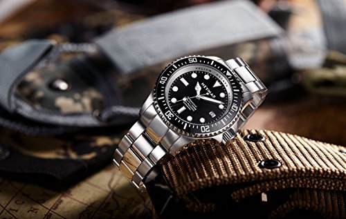 -. Title : 1000m Dive watch Mens stainless steel Steel color Automatic 500m diving watch