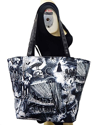 (US HANDMADE FASHION)/Accessories/Handbags/DIRECT FROM USA/USA HANDMADE FASHION TRAVEL BAG WITH "HUNTED HOUSE" PATTERN SHOULDER BAG, COTTON, NEW, STRB 1322