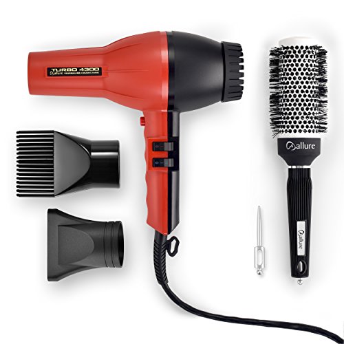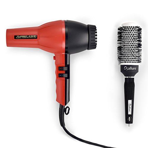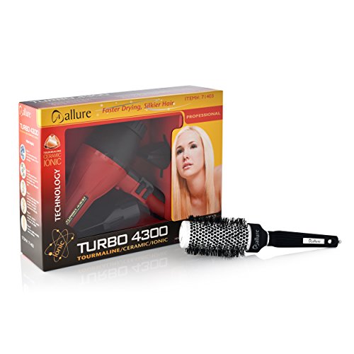 Allure Turbo 4300 Tourmaline/Ceramic/Ionic Hair Dryer + Silk Round Brush Set: Professional Hair Dryer + 43mm Ceramic Ionic Brush for Hair Quick Drying &...