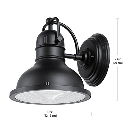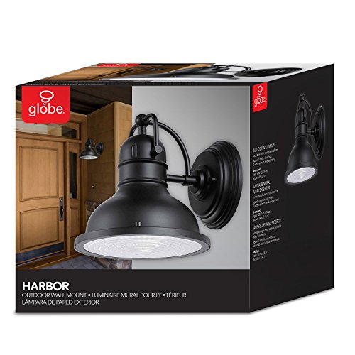 Globe Electric Harbor 1-Light Outdoor Wall Sconce, Matte Black Finish, Clear Plastic Diffuser, 44157