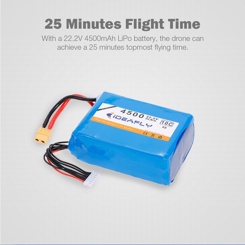 Features: IP67 waterproof level - it can withstand being soaked in water for more than 10h DJI LK24-BT 2.4GHz Bluetooth Datalink enables TapFly, Waypoints, One Key Takeoff / Landing / Return etc. (the Bluetooth Datalink device is not included) Real-time FPV within 800m range with 700TVL camera, 5.8G 32CH 600mW VTX, 7 inch FPV monitor Supports up to 1200g payload, possible to install a 3-axis gimbal and sports camera 4500mAh 22.2V 6S 25C LiPo provides you with up to up to 25 minutes' flying after 40 minutes' charging