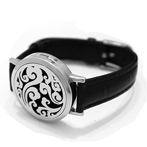 AromaRain Essential Oil Diffuser Bracelet - (Small-Medium Fits Wrists 5"- 6") 316L Stainless Steel Locket With High Quality Black Leather Band
