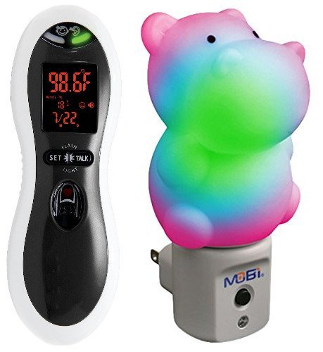 -. Brand : Mobi Technologies -. Feature : Forehead and Ear reading - The Dual Scan Ultra Forehead and Ear thermometer offers both forehead and ear scan modes / Fever indicators - This feature alerts you of high/low fever of your loved ones, without having to remember the high fever temperature degrees / Fingertip Pulse Meter - Read your pulse rate by simply scanning your finger Seven Audible Languages - Reads your temperature in 7 different languages Read your pulse rate by simply scanning your finger. / Quick and Easy - By pressing and holding one button, you can read your body temperature Memory Recall - Can store up to 30 previous readings for easy recall of previous temperatures. Display reading in Fahrenheit or Celsius.Fingertip Pulse Meter - Read your pulse rate by simply scanning your finger. -. ProductGroup : Kitchen -. ProductTypeName : KITCHEN -. Title : MOBI ULTRA PULSE Talking Ear & Forehead Thermometer with Pulse Meter, High Fever Indicators & Seven Languages
